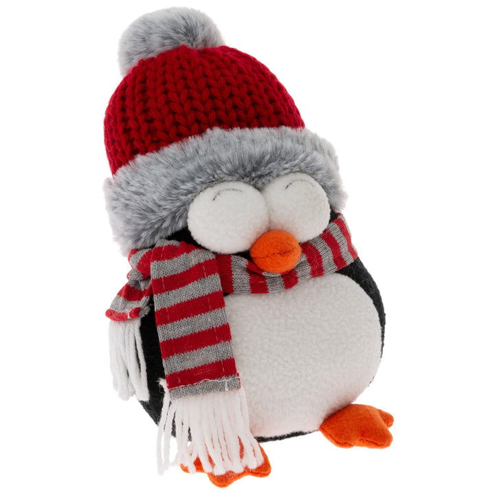 Meet Kirby, the red-beanie penguin accent that brings instant personality to your decor with soft polyester textures and a jaunty striped scarf. Filled with sand for a stable, sit-anywhere display, this charming figurine settles effortlessly onto shelves, mantels, or desktops. Approximate dimensions are 5.5 x 5 x 8 inches.