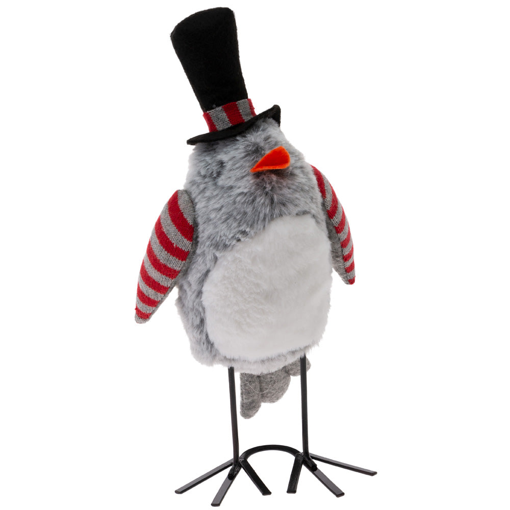 Dapper and delightful, Black Top Hat Bird Lewis perches on sturdy iron legs with a plush polyester body, striped wings, and a jaunty black top hat that instantly sparks conversation. Crafted of polyester, iron, and plastic, this whimsical bird figurine adds height, texture, and playful personality to mantels, shelves, or entryway vignettes. Approximate dimensions are 4.75 x 5.25 x 10.75 inches.