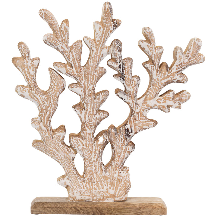 Crafted of mango wood with a softly whitewashed finish, this large coral silhouette brings a relaxed coastal mood while letting the natural grain peek through. Style it on a console, bookshelf, or mantel to add organic texture and an easy, breezy focal point among your favorite neutral accents. Approximate dimensions are 11.5 x 2 x 12.5 inches.