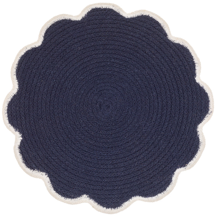 The Navy Scalloped Placemat brings soft curves and a rich navy hue to the table, crafted of durable jute in a concentric weave that adds inviting texture. A crisp contrast border frames your place setting while the natural fibers protect surfaces and layer effortlessly with patterned linens. Approximate dimensions are 15 x x inches.