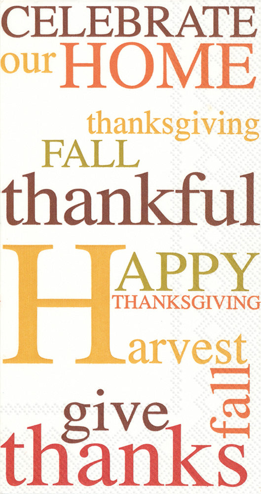 Welcome guests with the Celebrate Our Home Guest Towel, a paper napkin showcasing bold word-art and gratitude-inspired sentiments that bring warmth to any gathering. Soft yet sturdy, these disposable guest towels elevate sinksides and tabletops with an inviting, heartfelt touch. German printed on soft, 3-ply paper.