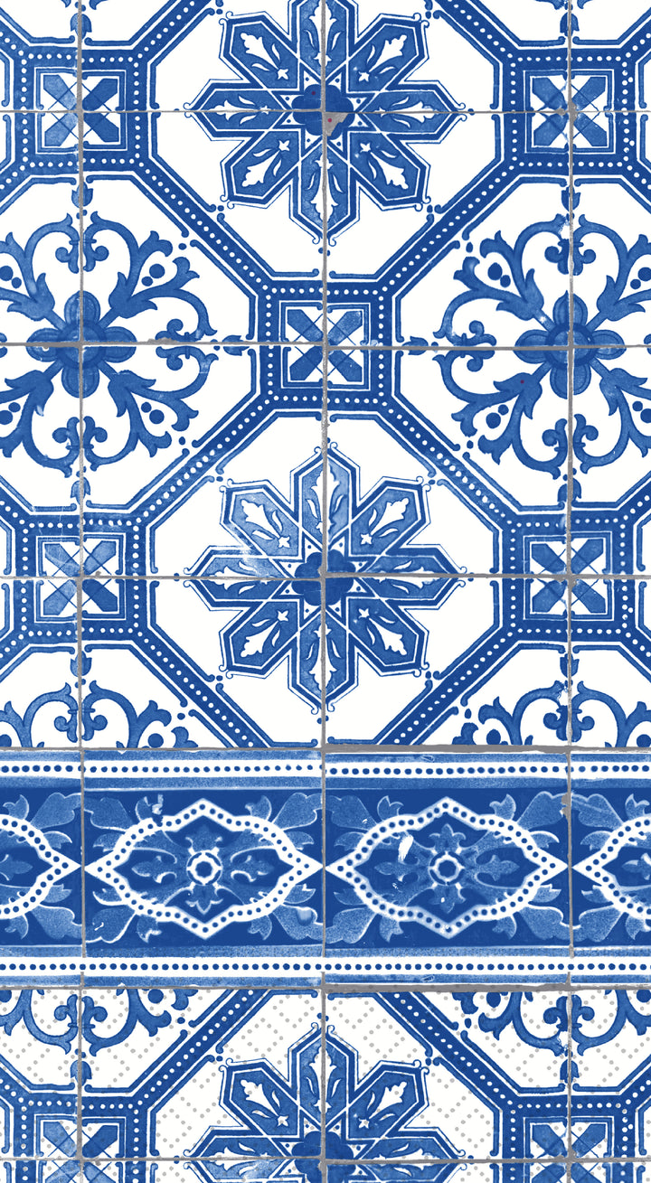Echoing hand-painted Moroccan tilework in crisp blue and white, these paper guest towels bring artisanal pattern to the powder room, bar, or buffet. Soft, absorbent, and conveniently disposable, they lend a polished touch to everyday gatherings and easy hosting. Approximate dimensions are 7.9 x 4.3 x 1 inches. German printed on soft, 3-ply paper.