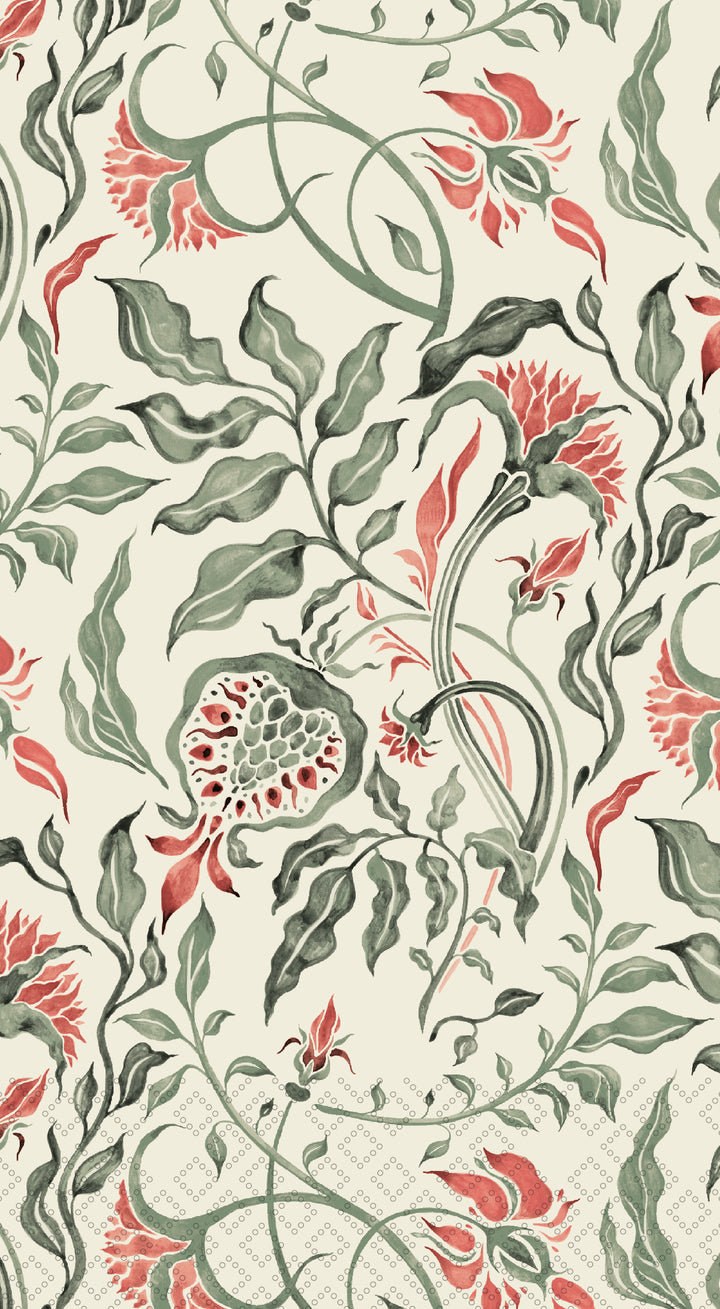 Vintage botanicals unfurl in rich olive greens with rosy blooms across the Royal Pattern Olive Guest Towel, lending regal charm to powder rooms and buffet displays. Printed on soft, absorbent paper, these disposable guest towels deliver polished hospitality with the ease of single-use convenience. German printed on soft, 3-ply paper. Approximate dimensions are 7.9 x 4.3 x 1 inches.