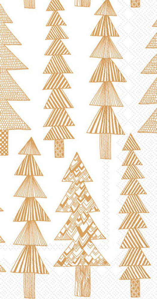 Kuusikossa Guest Towel White Gold sketches a graphic forest of golden trees on crisp white, a clean, modern accent for the powder room or buffet. Printed on quality paper, these disposable guest towels offer effortless hosting with a refined look and everyday convenience. Approximate dimensions are 8.25 x 4.5 x 1 inches. German printed on soft, 3-ply paper.