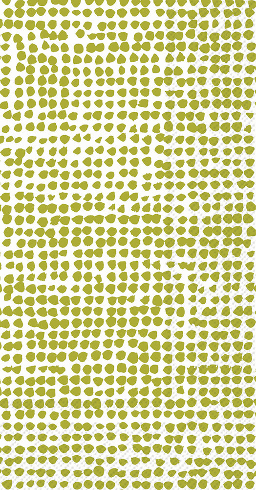 A modern scatter of green dots dances across soft white paper, giving the Orkanen Guest Towel a lively, organic pattern. Perfect for powder rooms and effortless hosting, these disposable paper guest towels bring easy elegance and a tidy finish to every visit. Approximate dimensions are 8.25 x 4.5 x 1 inches. German printed on soft, 3-ply paper.