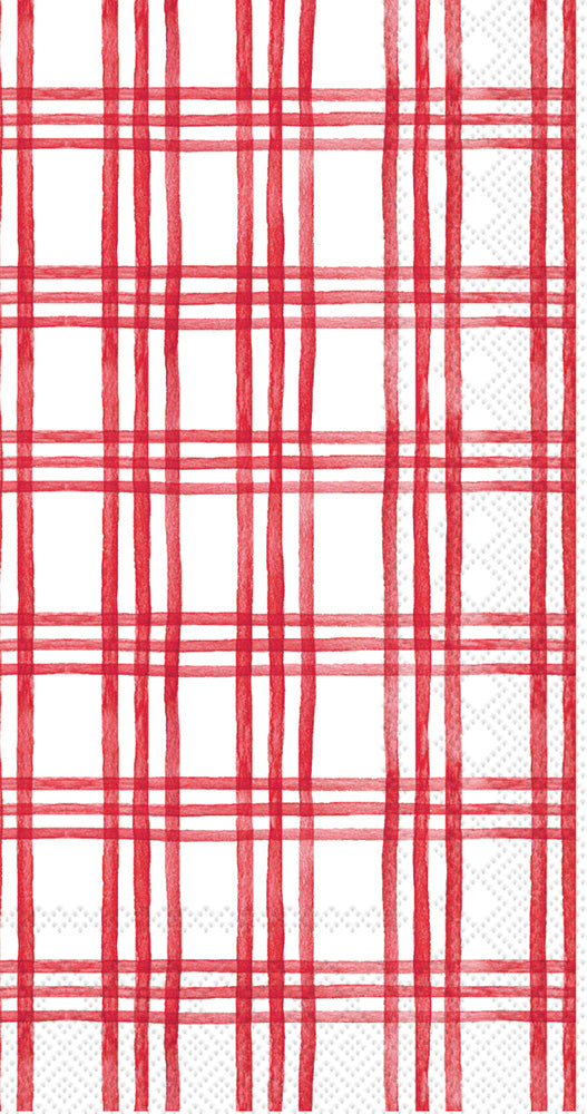 A lively brushstroke red plaid on crisp white paper gives the Holly Jolly Guest Towel a bright, tailored look for the powder room or buffet. Soft, absorbent, and disposable, these paper guest towels offer effortless hosting and a cheerful pop of pattern you can mix with solids or other plaids. Approximate dimensions are 4.5 x 1 x 8.25 inches. German printed on soft, 3-ply paper.
