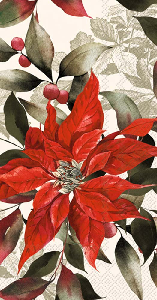 Elevate the sink-side moment with the Good Jul Guest Towel, a cream backdrop blooming with painterly poinsettias and soft foliage. Crafted from quality paper, these disposable guest towels deliver absorbent performance and a gracious, hygienic touch for gatherings and daily rituals. Approximate dimensions are 4.5 x 1 x 8.25 inches. German printed on soft, 3-ply paper.