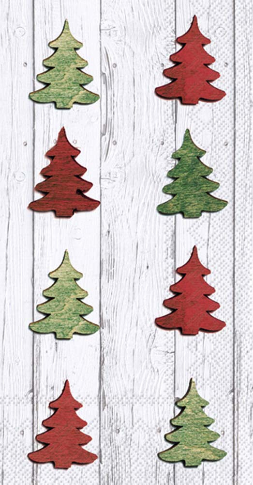 Charming evergreen silhouettes in red and green march across a whitewashed woodgrain backdrop, giving these paper guest towels a cozy, lodge-inspired look. Perfect for the bath or buffet, the Ole Guest Towel offers a tidy single-use touch that keeps entertaining effortless and polished. Approximate dimensions are 4.5 x 1 x 8.25 inches. German printed on soft, 3-ply paper.
