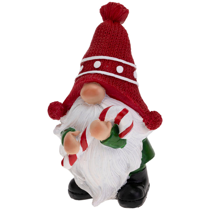Sweeten any nook with the Jellybeans Candy Cane Gnome, crafted in durable resin with a knit-look cap, classic beard, and a bright striped cane in hand. This whimsical figurine slips onto mantels, shelves, or tiered trays to add a playful pop of gnome personality to your space. Approximate dimensions are 2.5 x 2.5 x 5.25 inches.