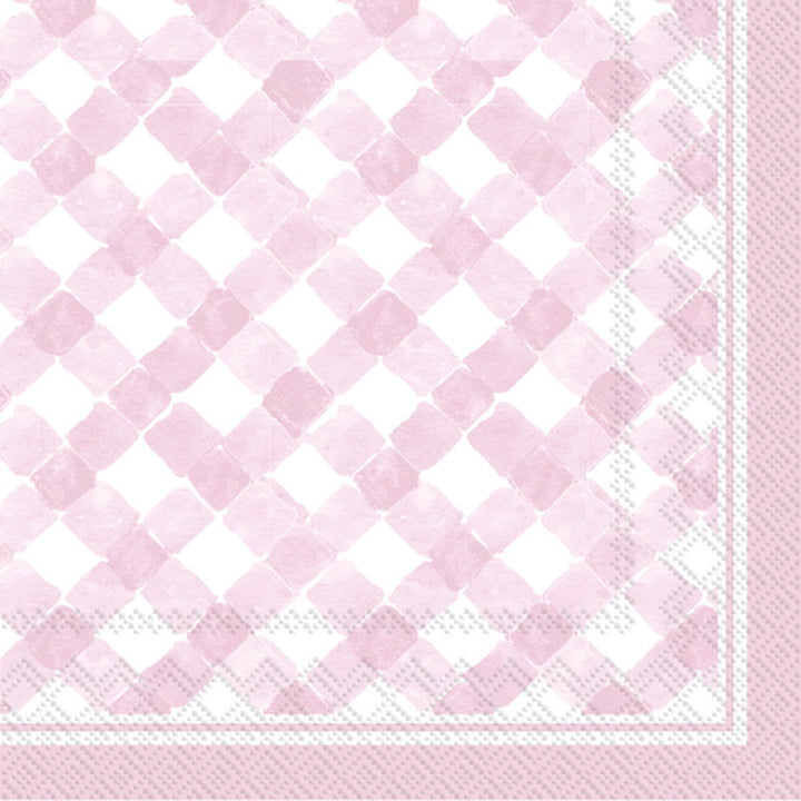 Softly hued in light rose, this gingham-patterned cocktail napkin lends a fresh, watercolor check to elevate bar carts and small bites. Printed on quality paper, it blends charm and practicality to brighten everyday sips and easy entertaining. Approximate dimensions are 5 x 5 x 1 inches. German printed on soft, 3-ply paper.