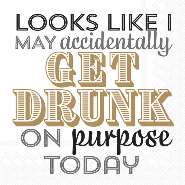 Serve up a cheeky toast with these paper cocktail napkins, flaunting bold mixed-type lettering that quips, “Looks like I may accidentally get drunk on purpose today.” Ideal for bar carts and lively gatherings, they bring instant humor to every pour while tidying up the inevitable drips. Approximate dimensions are 5 x 5 x 1 inches. German printed on soft, 3-ply paper.
