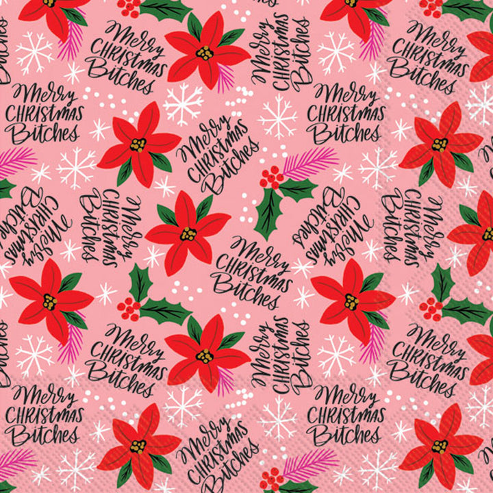 Serve up laughs with the Merry Christmas Bitches cocktail napkins, flaunting cheeky script with poinsettias, holly, and snowflakes on a lively pink backdrop. Printed on quality, absorbent paper, these playful party essentials keep spills in check while bringing irreverent cheer to every toast. Approximate dimensions are 5 x 5 x 1 inches. German printed on soft, 3-ply paper.
