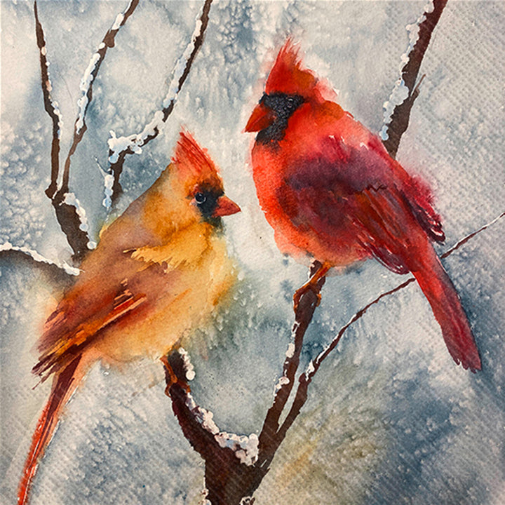 Celebrate the moment with the She and He Cocktail Napkin, where a watercolor duet of cardinals lends graceful color to the table. Crafted on soft, absorbent paper, these cocktail napkins add artful charm to happy hours, brunches, and every small celebration. German printed on soft, 3-ply paper.