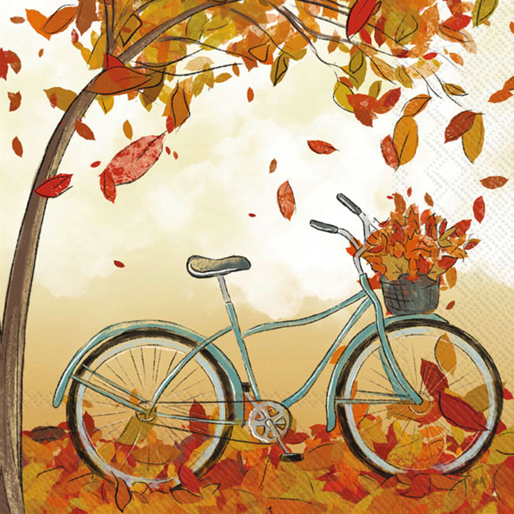 Joy Ride Cocktail Napkin brings easygoing charm to any pour, with a whimsical bicycle and dancing leaves rendered in artful hues on quality paper. Cocktail-sized for effortless serving and quick cleanups, it adds a breezy touch to happy hours, brunches, and impromptu get-togethers. Approximate dimensions are 5 x 5 x 1 inches. German printed on soft, 3-ply paper.