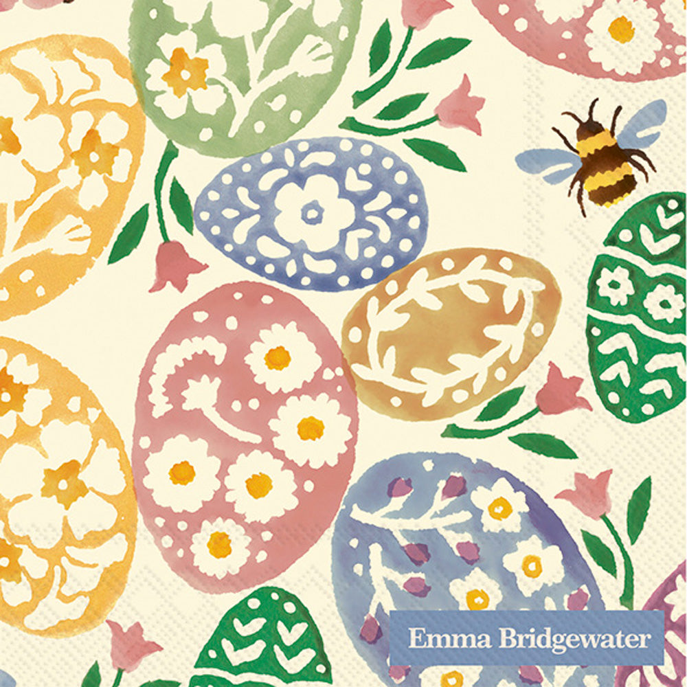 Bring a cheerful touch to sips and small bites with these cream paper cocktail napkins, scattered with painterly eggs, blossoms, and friendly bees in soft pastels. Absorbent and party-ready, they add effortless charm to trays and tabletops from brunch to bubbly hour. Approximate dimensions are 5 x 5 x 1 inches. German printed on soft, 3-ply paper.