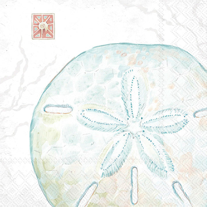 An airy watercolor sand dollar drifts across crisp paper, bringing a coastal note to cocktails and canapés. These cocktail napkins layer effortlessly with beach-inspired tablescapes, offering a serene shells motif for everyday entertaining. Approximate dimensions are 5 x 5 x 1 inches. German printed on soft, 3-ply paper.