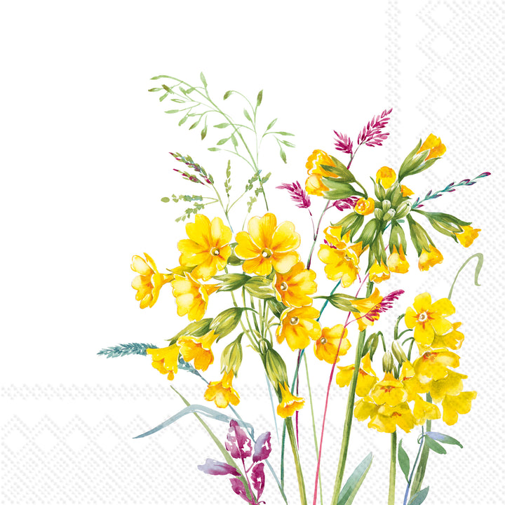 The Cabrillo Cocktail Napkin blooms with painterly yellow florals and delicate greenery set against a clean white ground for a fresh, uplifting touch at the bar. Printed on quality paper, these floral cocktail napkins make effortless work of serving drinks and small bites while adding an elegant pop of color to any gathering. Approximate dimensions are 5 x 5 x 1 inches. German printed on soft, 3-ply paper.