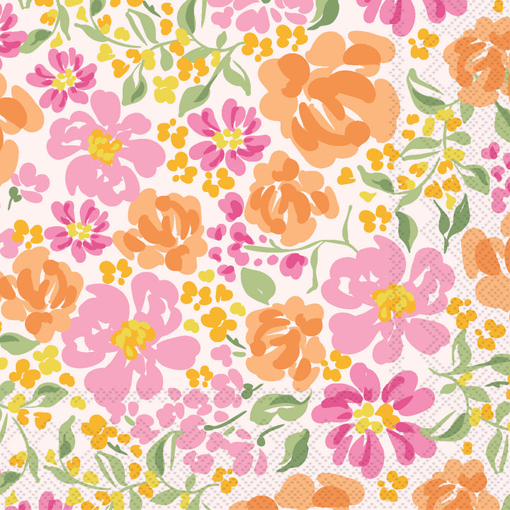 Bring a fresh bloom to the bar with our Secret Garden Cocktail Napkin in pink, where painterly florals in peach, pink, and sunny yellow flourish across high-quality paper. Ideal for sips and small bites, these floral cocktail napkins add polished charm and a pop of color to everyday entertaining. German printed on soft, 3-ply paper. Approximate dimensions are 5 x 5 x 1 inches.
