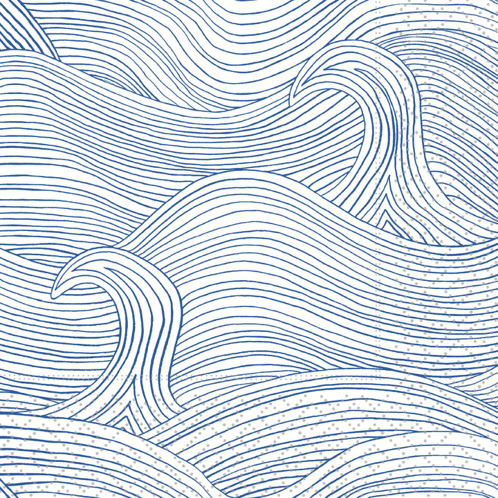 Ride the crest of every toast with the Wind Waves Cocktail Napkin, where cool blue linework sketches rhythmic surf across soft white paper. Perfectly sized for drinks and small bites, this patterned napkin adds a breezy, artful finish to bars, trays, and effortless entertaining. Approximate dimensions are 5 x 5 x 1 inches. German printed on soft, 3-ply paper.