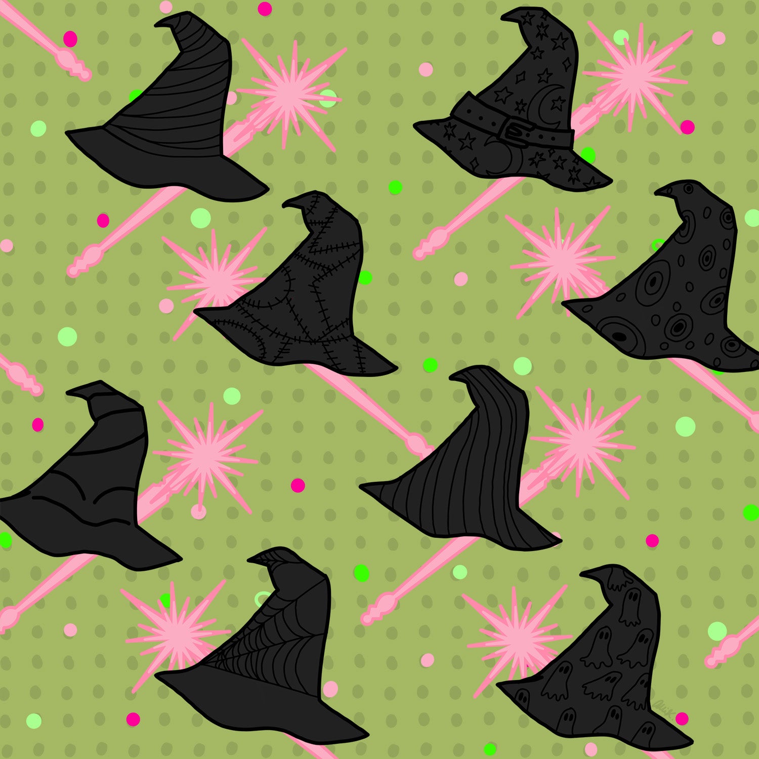 Wicked Witch Hats Cocktail Napkin conjures playful charm with an allover pattern of inky hats, sparkling wands, and lively confetti dots on printed paper. Perfect for sips and small bites, these cocktail napkins add a dash of mischief and effortless cleanup to any gathering. Approximate dimensions are 5 x 5 x 1 inches. German printed on soft, 3-ply paper.