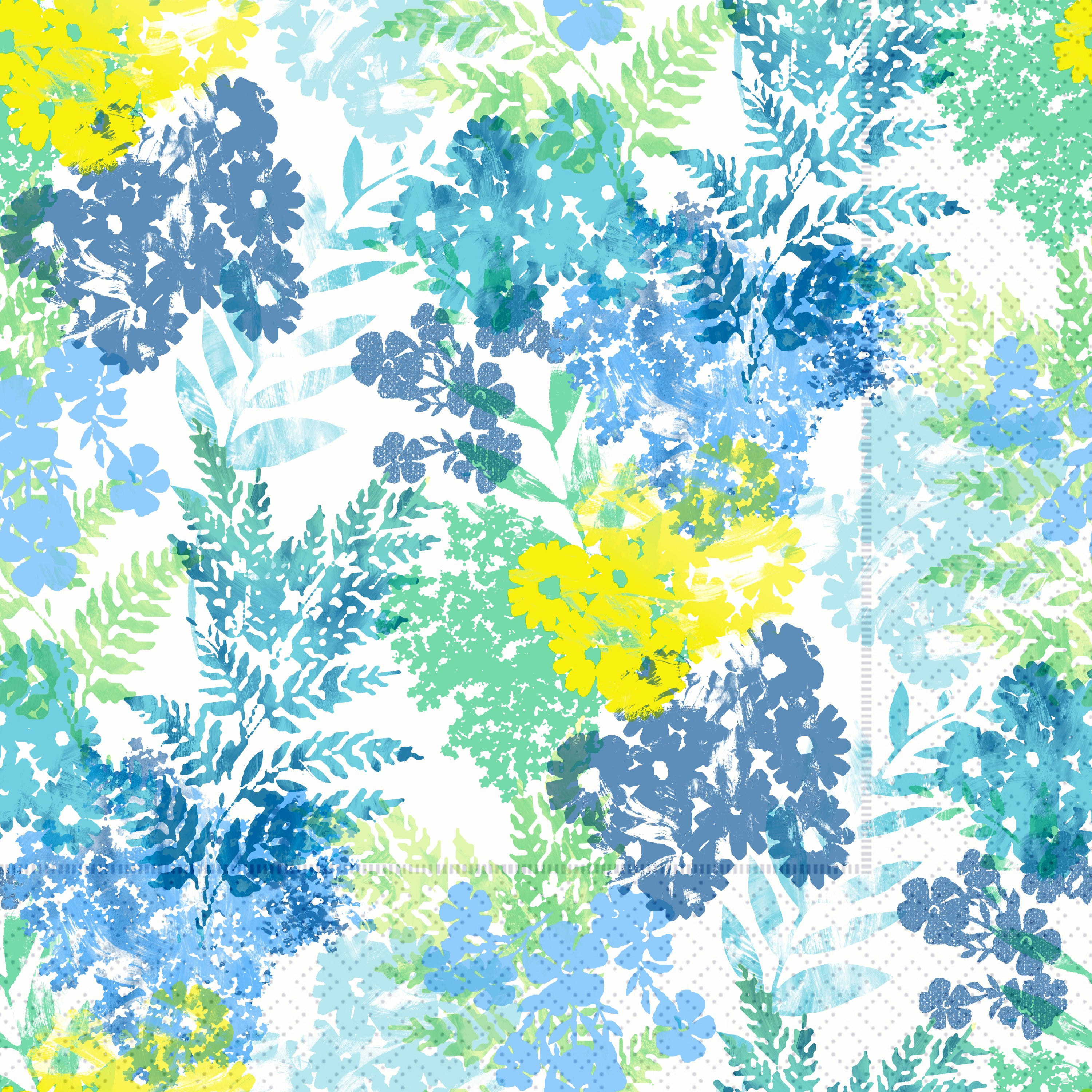 Awash in watercolor blossoms, fern fronds, and airy layers of cool blues with fresh greens and touches of sunny yellow, our Fields Of Blue Cocktail Napkins bring artful bloom to every sip. Printed on soft, absorbent paper, these floral cocktail napkins add an easy, polished finish to hors d’oeuvres, bar carts, and everyday entertaining. Approximate dimensions are 5 x 5 x 1 inches. German printed on soft, 3-ply paper.
