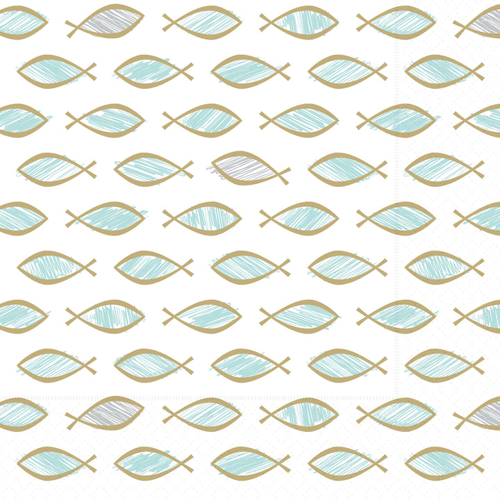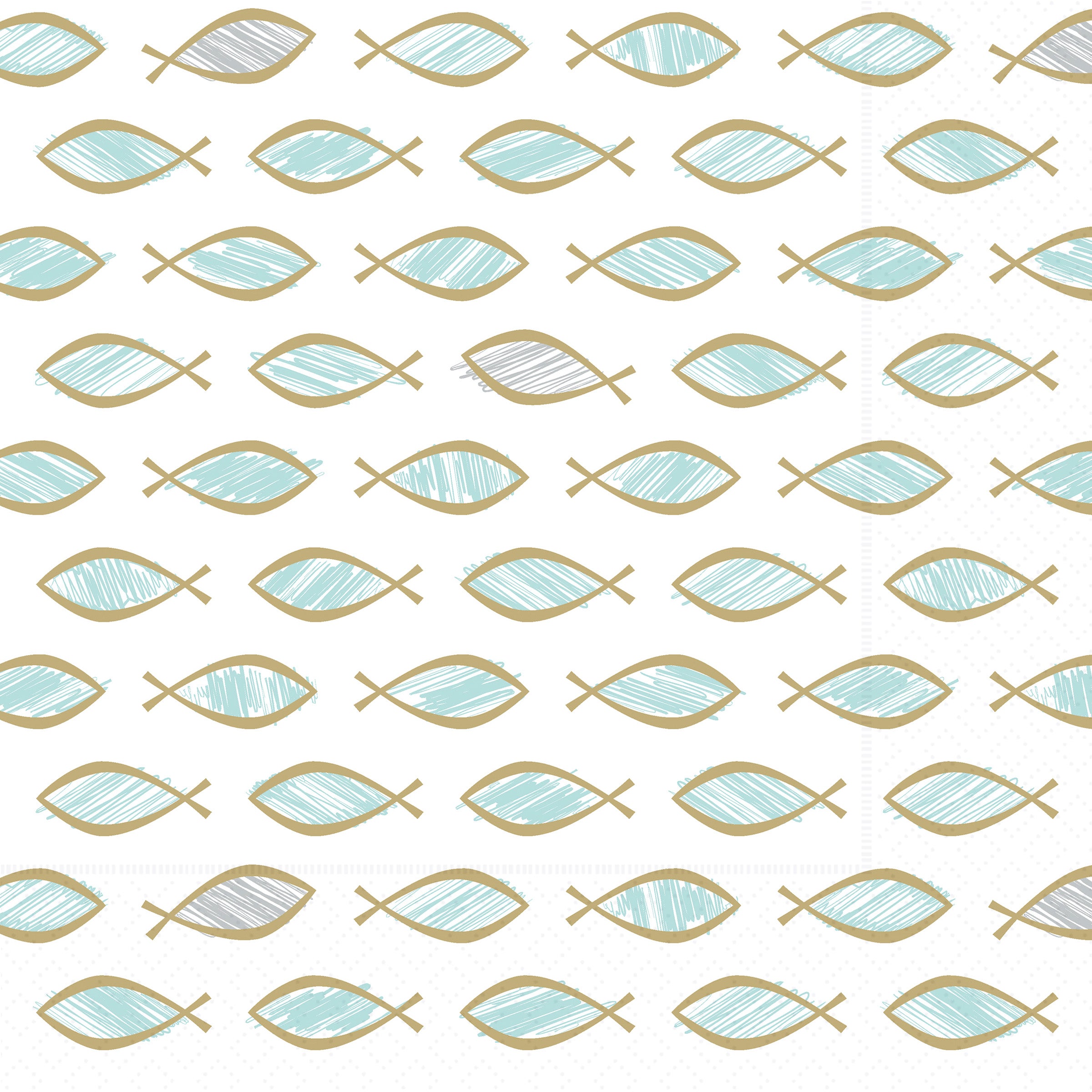 Bring breezy coastal charm to every pour with our Infinity Fish Cocktail Napkin, patterned with a rhythmic school of sketch-style fish in sea-glass blues and sandy neutrals. Made of soft, absorbent paper, these cocktail napkins lend laid-back elegance to happy hour, seafood spreads, and effortless cleanup. German printed on soft, 3-ply paper. Approximate dimensions are 5 x 5 x 1 inches.