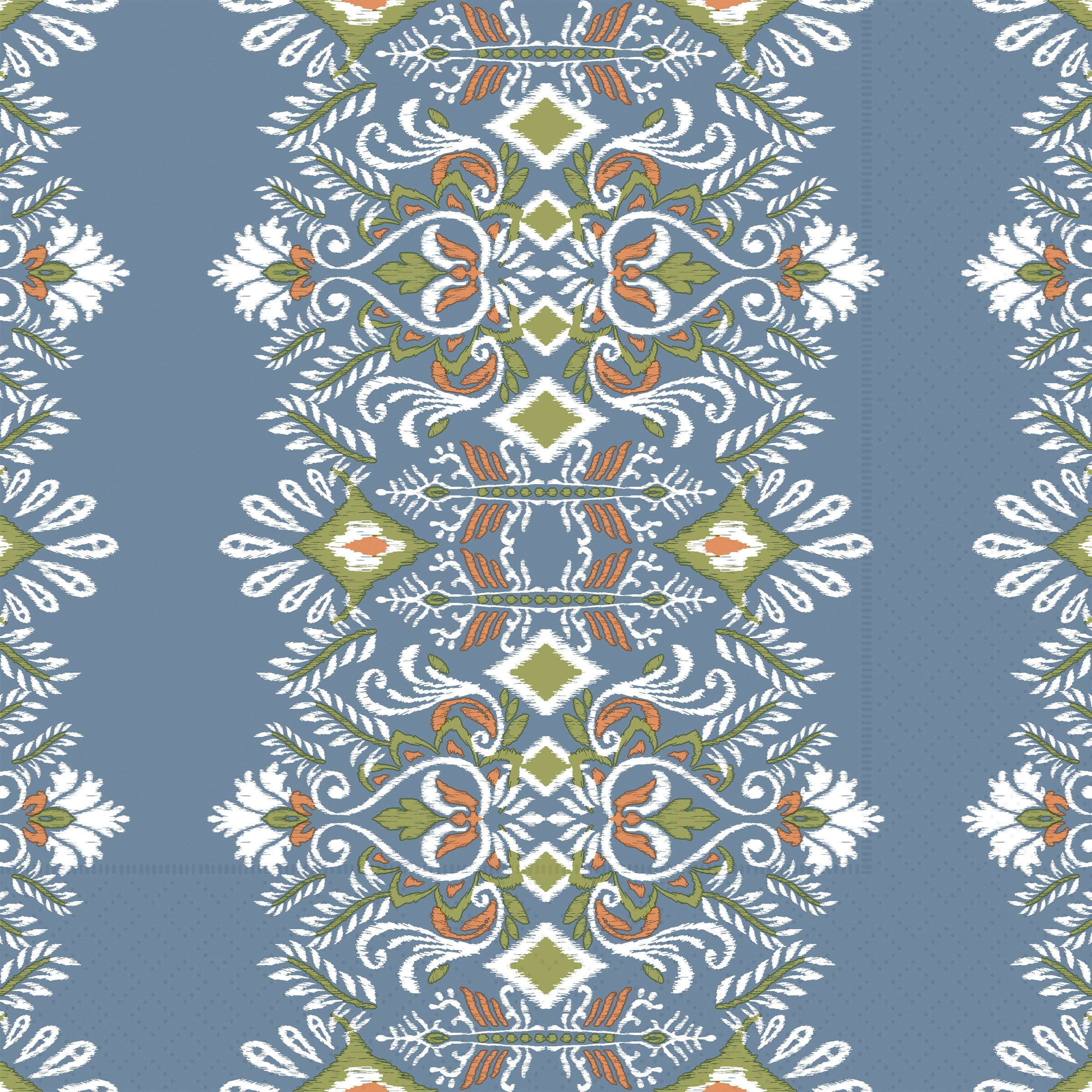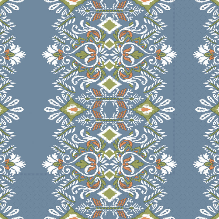The Mosaic Tapestry Cocktail Napkin layers an intricate, textile-inspired pattern in slate blue with white, olive, and terracotta accents to bring artful polish to every pour. Printed on quality paper for reliable absorbency and a refined feel, this patterned cocktail essential elevates happy hours, hors d’oeuvres, and everyday hosting. German printed on soft, 3-ply paper. Approximate dimensions are 5 x 5 x 1 inches.