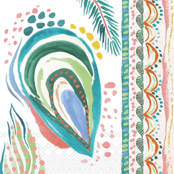 Bring a splash of shore-side charm to every sip with our Coastline Oyster Cocktail Napkin, featuring an artful oyster shell rendered in breezy watercolor hues and framed by playful, hand-painted patterns. Printed on soft, absorbent paper, these coastal cocktail napkins are perfect for drinks and small bites, instantly elevating casual gatherings and seaside-inspired entertaining. German printed on soft, 3-ply paper. Approximate dimensions are 5 x 5 x 1 inches.