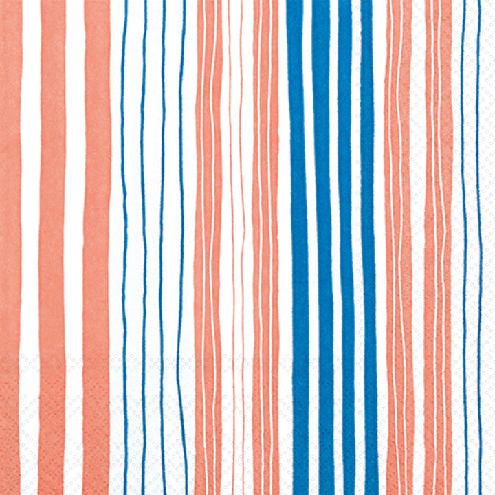 Bring a playful rhythm to every pour with the Wibbly Stripes Cocktail Napkin, where wavy coral and deep blue stripes pop against bright white. Made of soft paper, these cocktail napkins add breezy polish to happy hours, small bites, and effortless entertaining. Approximate dimensions are 5 x 5 x 1 inches. German printed on soft, 3-ply paper.