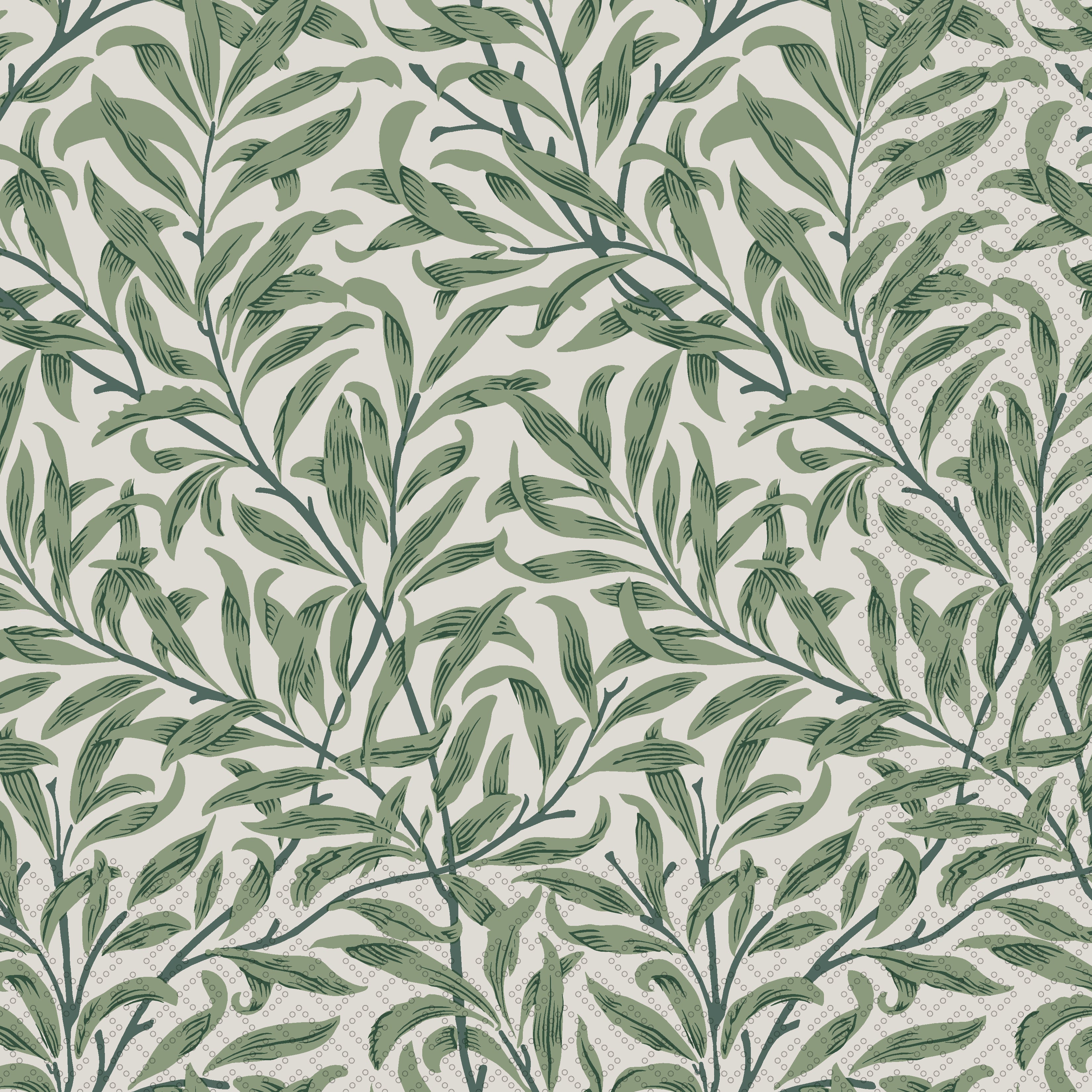 Verdant willow vines sweep across these paper cocktail napkins, bringing a fresh, botanical accent to every pour and passed plate. Perfectly sized for bar carts and aperitifs, the leafy pattern layers effortlessly with casual or elevated table settings. German printed on soft, 3-ply paper. Approximate dimensions are 5 x 5 x 1 inches.