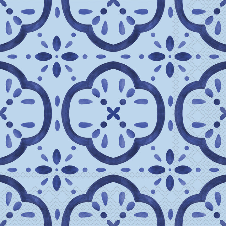 A vintage tile motif in layered Amalfi blues brings effortless coastal-cucina charm to every pour. Printed on quality paper, these cocktail napkins deliver easy cleanup and a polished finish at the bar cart, brunch tray, or happy hour. German printed on soft, 3-ply paper. Approximate dimensions are 5 x 5 x 1 inches.