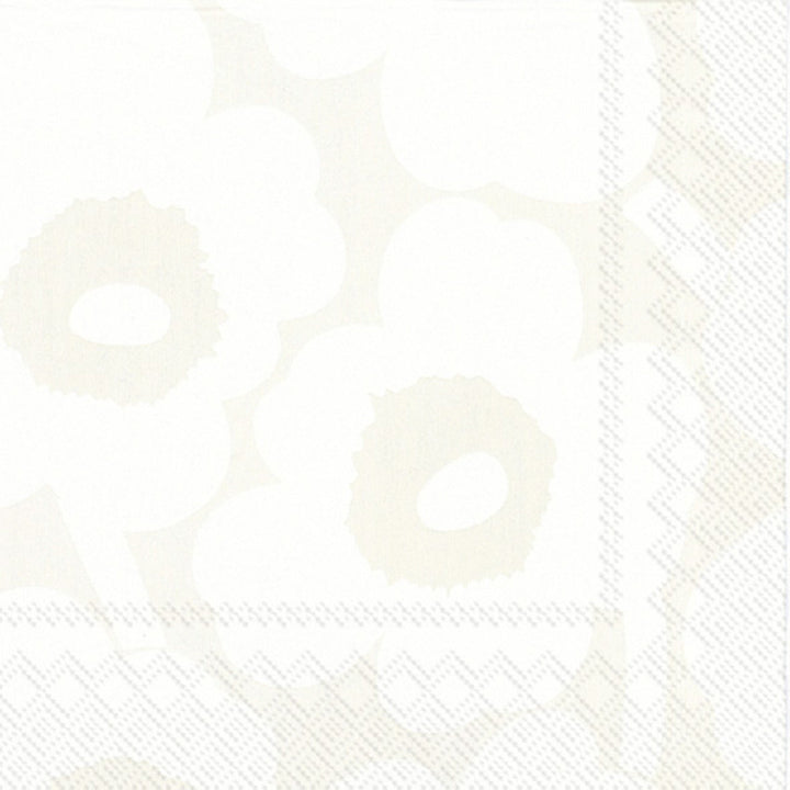 Softly toned poppies bloom across these white-and-grey paper cocktail napkins, bringing a serene floral touch to casual pours and polished spreads. The Unikko design layers beautifully with glassware and appetizers, elevating everyday moments with a modern, understated finish. Approximate dimensions are 5 x 5 x 1 inches. German printed on soft, 3-ply paper.