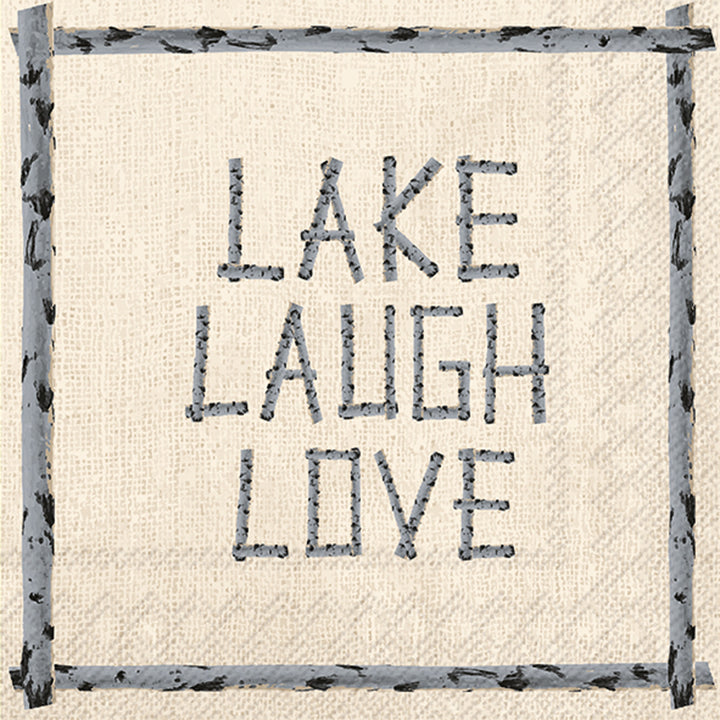 Bring laid-back dockside charm to happy hour with these paper cocktail napkins, printed with the cheerful “Lake Laugh Love” message framed in a rustic motif. Perfectly sized for sips and small bites, they add an easy, absorbent touch to lakeside gatherings, cabin bars, and everyday entertaining. Approximate dimensions are 5 x 1 x 5 inches. German printed on soft, 3-ply paper.