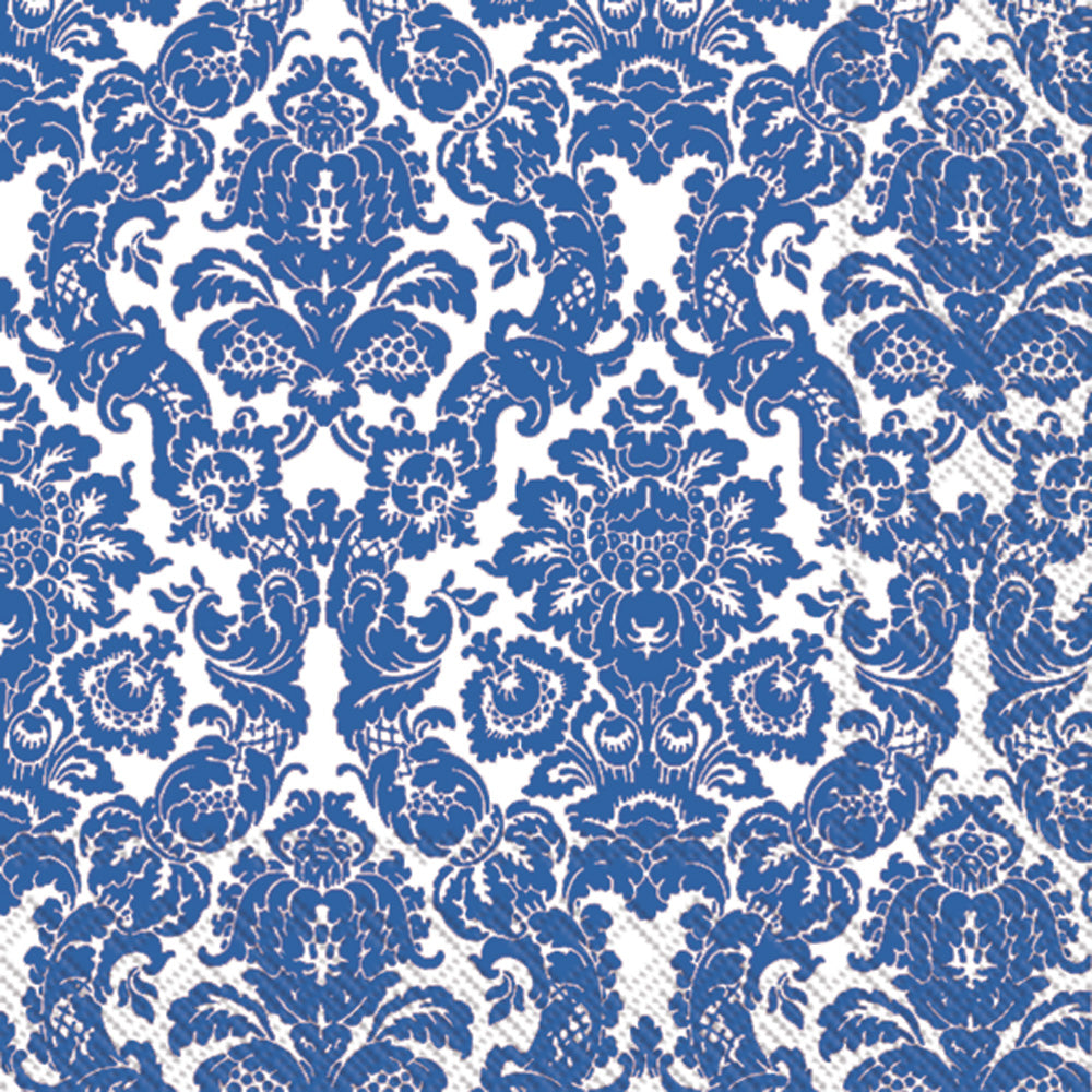 Set a stately tone at cocktail hour with the Palais Cocktail Napkin Admiral, showcasing an intricate damask pattern in rich admiral blue on crisp white. Printed on quality paper, these patterned cocktail napkins add polished flair to every pour, passed bite, and bar cart display. Approximate dimensions are 5 x 5 x 1 inches. German printed on soft, 3-ply paper.