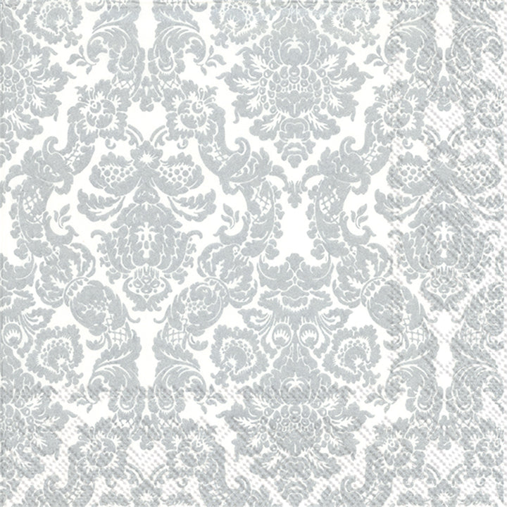 Grace every toast with the Palais Cocktail Napkin, showcasing an elegant white-and-silver damask pattern that brings quiet grandeur to the bar cart. Printed on soft, absorbent paper, these refined cocktail napkins offer effortless cleanup while lending a polished finish to drinks and small bites. Approximate dimensions are 5 x 1 x 5 inches. German printed on soft, 3-ply paper.