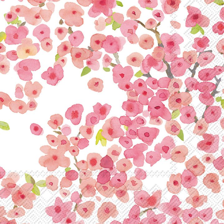 The Meryl Cocktail Napkin scatters watercolor cherry blossoms in blush and fuchsia across crisp white paper, bringing a delicate floral accent to every pour and small bite. Designed for effortless hosting, these paper cocktail napkins add artful charm to happy hours, showers, and everyday moments. Approximate dimensions are 5 x 1 x 5 inches. German printed on soft, 3-ply paper.
