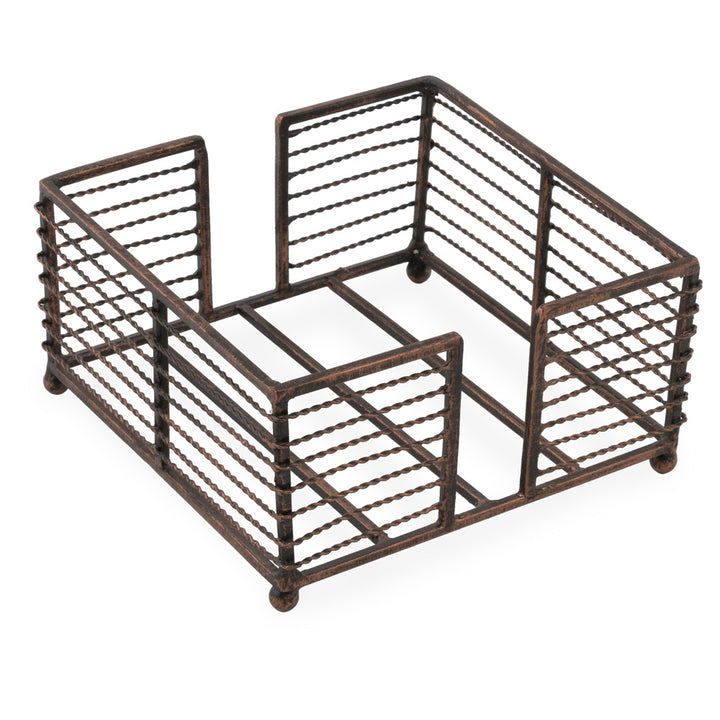 Crafted from iron with a warm copper finish, the Twisted Wire Cocktail Caddy showcases a tactile, patterned grid that brings artisanal structure to your bar. Elevated on rounded feet and sized to corral napkins, stirrers, and tools, it keeps essentials organized and within reach from prep to pour. Approximate dimensions are 5.25 x 5.25 x 2.75 inches.