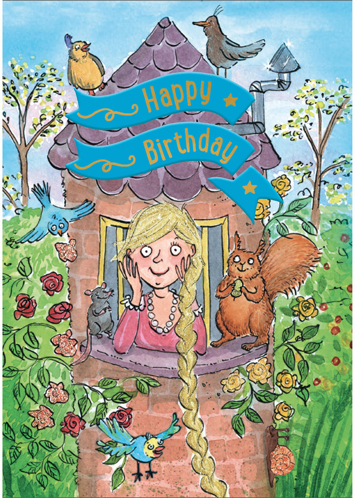 Bring a fairy tale to life with the Rapunzel Birthday Card, where a whimsical tower scene twinkles with plastic-and-glass embellishments for storybook sparkle. Inside, the simple Happy Birthday greeting leaves room for your words, creating an enchanting keepsake for fantasy fans of any age. Approximate dimensions are 7 x 5 x .25 inches.