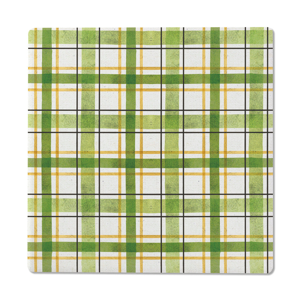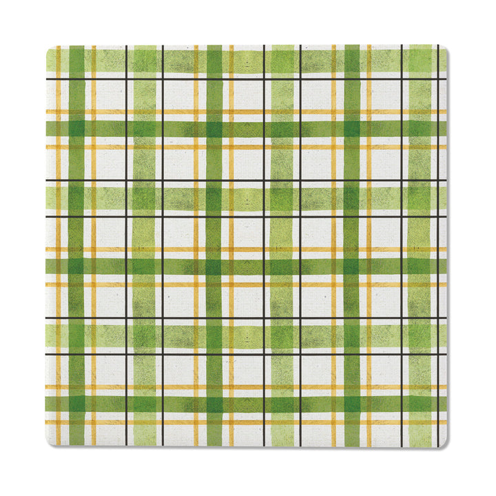 The Lucky Cuties Plaid Coasters layer fresh greens and warm golden stripes into a crisp ceramic plaid that brightens any tabletop. As handsome as they are hardworking, these coasters help protect surfaces from drink rings while adding an easy pop of pattern to everyday sipping. Approximate dimensions are 4 x 4 x .25 inches.