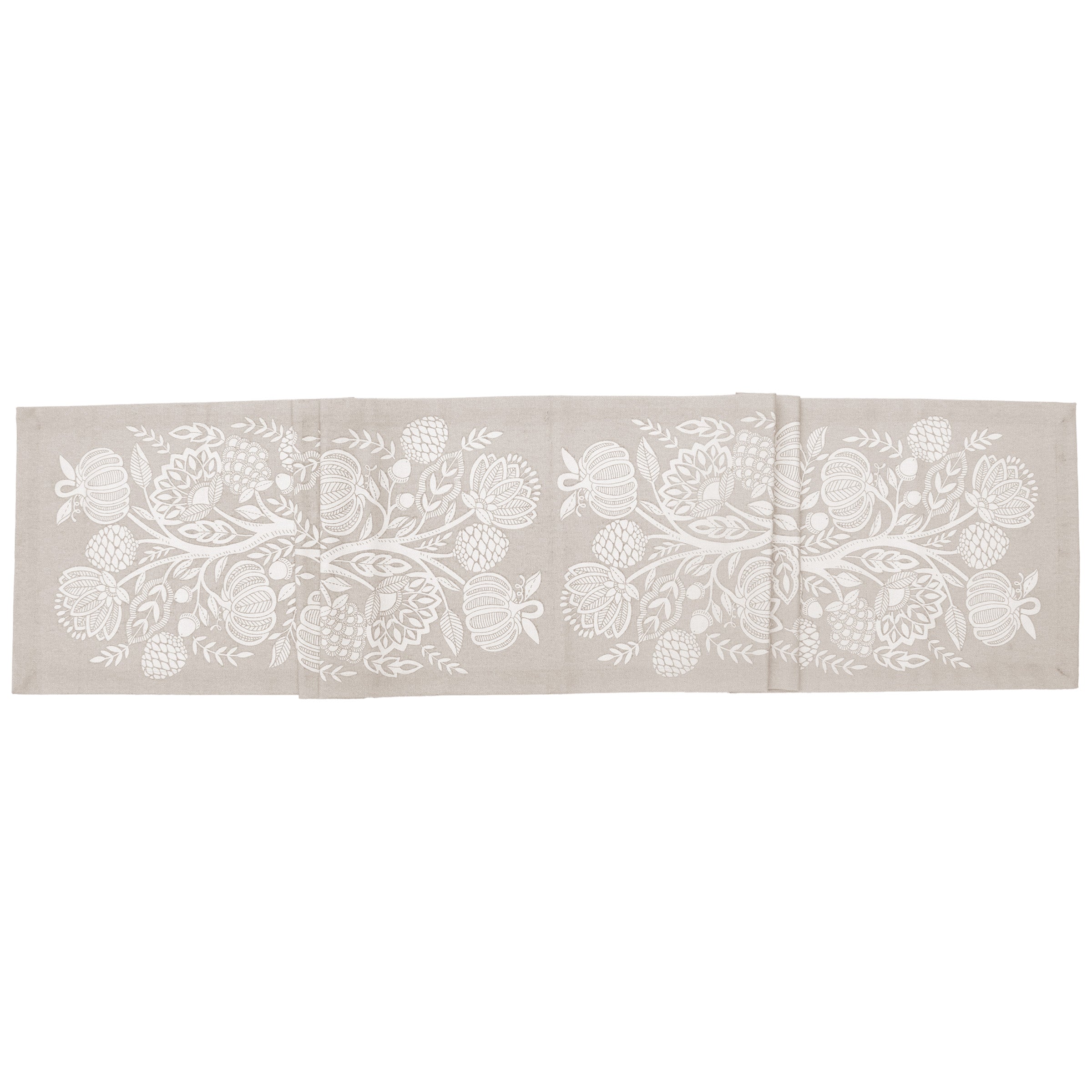 The Francis Cream Table Runner in soft cotton brings quiet elegance to the table with a tonal floral-and-pumpkin motif that adds depth without overwhelming your setting. Its neutral palette layers effortlessly with everyday dinnerware, creating a refined foundation for casual meals and special gatherings alike.