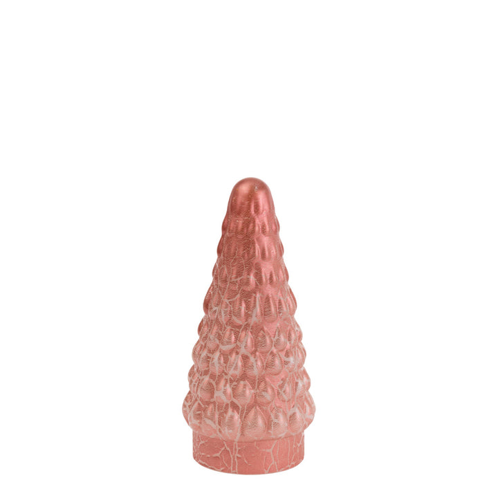 Petite yet striking, the Small Cool Coral Glass Tree features textured, frosted glass in a fresh coral hue that softly catches the light. Style it solo on a shelf or cluster with other accents to bring a modern, dimensional pop to any space. Approximate dimensions are 3.25 x 3.25 x 8 inches.