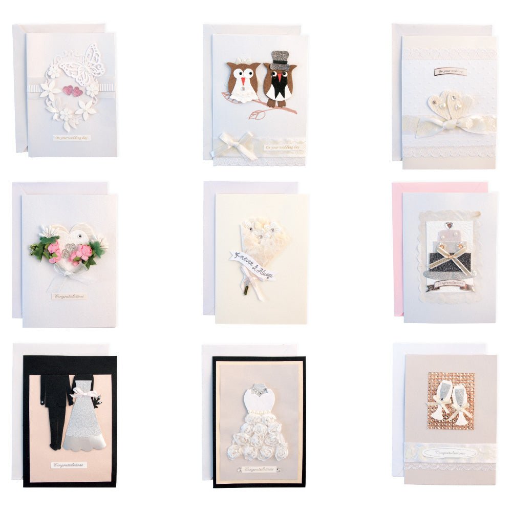 Elegant and joy-filled, the Wedding Day Card Collection showcases romantic motifs with layered, dimensional accents and subtle shimmer for a keepsake-worthy greeting. With soft neutral palettes, coordinating envelopes, and generous space for your message, each card celebrates the couple in beautifully personal style. Approximate dimensions are 23 x 16 x 3 inches.