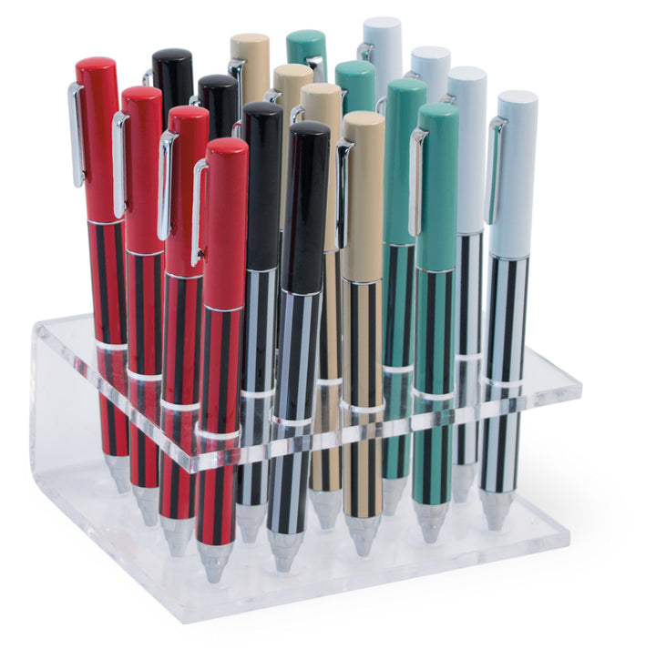 Make every list, note, and signature pop with the Barrel Pen set—20 striped, cap-top pens, four each in bold colors that bring personality to any desk. Comfortable in hand and effortlessly stylish, these everyday writers are ready for home offices, classrooms, and quick grab-and-go gifting. Approximate dimensions are 4.75 x 4 x 5 inches.
