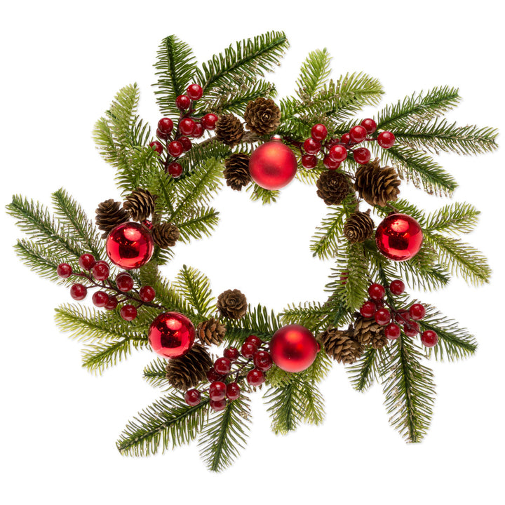 Red Balls & Berries Pinecone Wreath