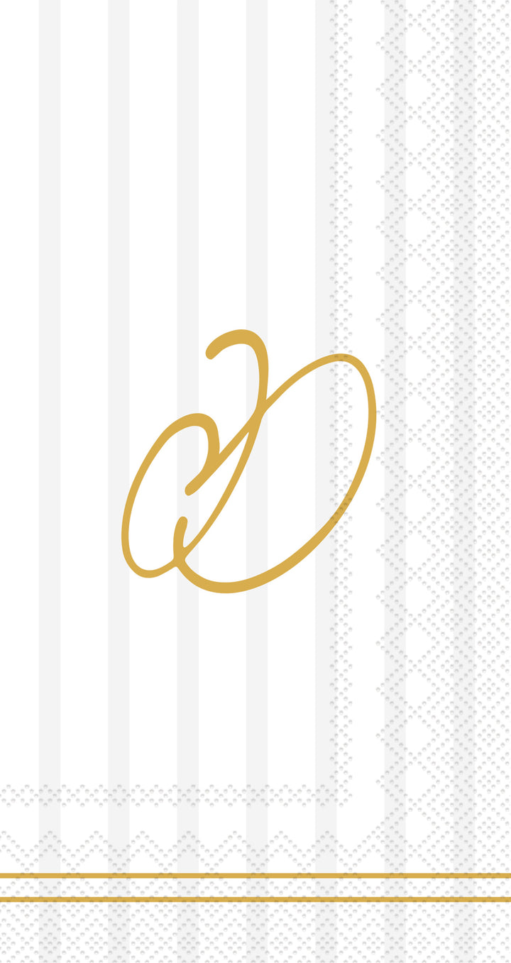 Elevate the powder room or buffet with CHIC MONOGRAM D cream guest towels, showcasing a graceful gold “D” on softly striped cream paper. Printed on absorbent, quality paper, they offer a polished, personalized touch with the ease of single-use convenience. Approximate dimensions are 8.25 x 4.5 x 1 inches. German printed on soft, 3-ply paper.