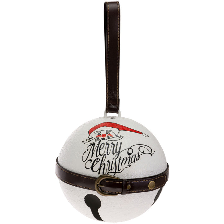 Ring in cheer with the Medium Belted Santa Bell, a metal accent whose jingle-ready design is finished with a classic buckle detail and an easy-to-hang strap. A vintage-style Santa graphic and “Merry Christmas” script add nostalgic charm, making this medium bell a festive statement on a door, mantel, or banister. Approximate dimensions are 8 x 8 x 16 inches.