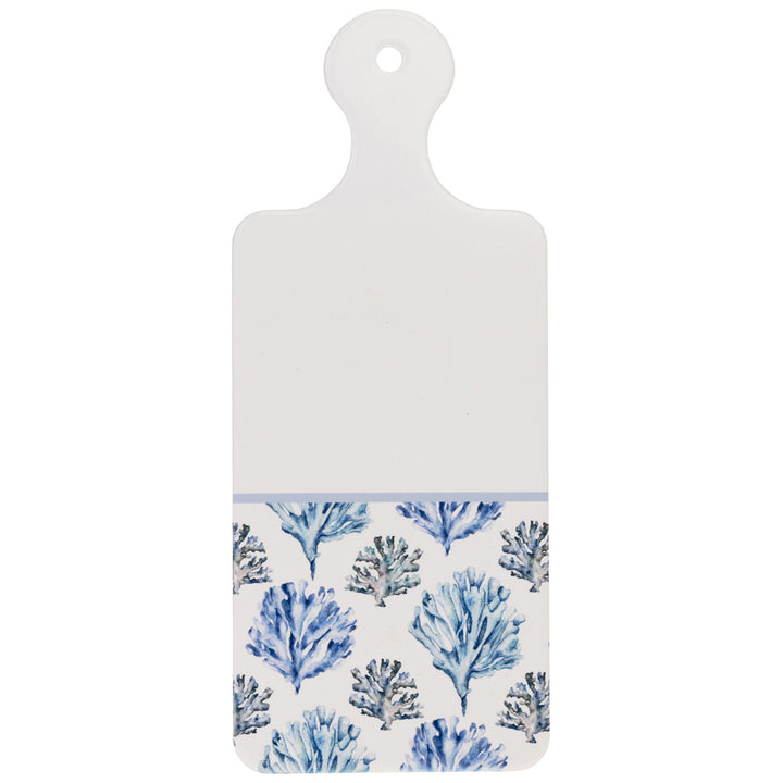 Bring breezy coastal charm to the table with the Coral Handled Trivet Tray, where painterly blue coral accents a smooth ceramic surface and a comfortable handle makes serving or hanging simple. Cork backing protects surfaces and resists slips, making this versatile piece as useful for resting hot dishes as it is for presenting cheeses or small bites. Approximate dimensions are 11.5 x 4.75 x .25 inches.