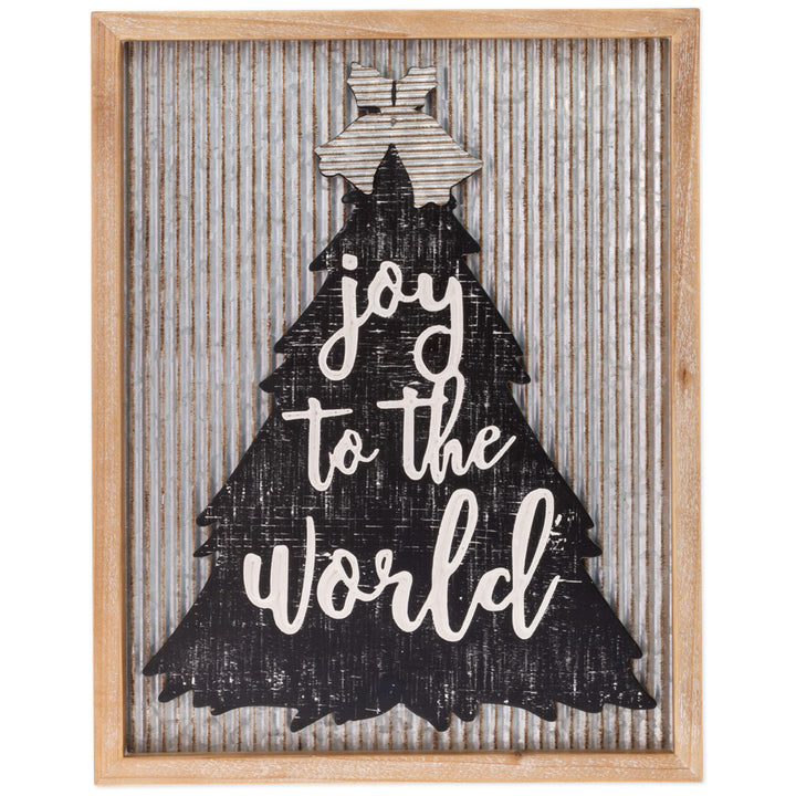 Spread uplifting cheer with this black-and-white wall sign, featuring a stylized evergreen silhouette and hand-lettered “joy to the world” script. A ribbed backdrop and simple frame lend modern farmhouse texture, making it an easy accent for entryways, mantels, or gallery walls. Approximate dimensions are 15.75 x 1 x 20 inches.