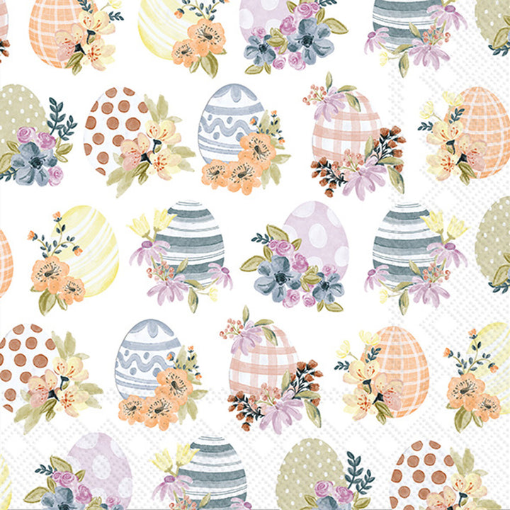 Pastel eggs and watercolor florals bloom across these paper lunch napkins, adding a fresh, cheerful note to any table. Soft yet absorbent, they deliver easy style and dependable cleanup for everyday meals and casual gatherings. Approximate dimensions are 6.5 x 6.5 x 1 inches. German printed on soft, 3-ply paper.