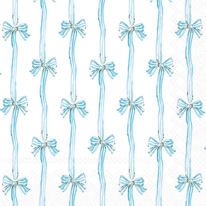 Delicately printed with watercolor-style ribbons and tidy bows in powder blue, the Baby Toile Lunch Napkin lends a sweet, classic touch to place settings. Crafted from quality paper for effortless cleanup, it’s a charming choice for baby celebrations, sip-and-see spreads, and everyday family lunches. Approximate dimensions are 6.5 x 6.5 x 1 inches. German printed on soft, 3-ply paper.